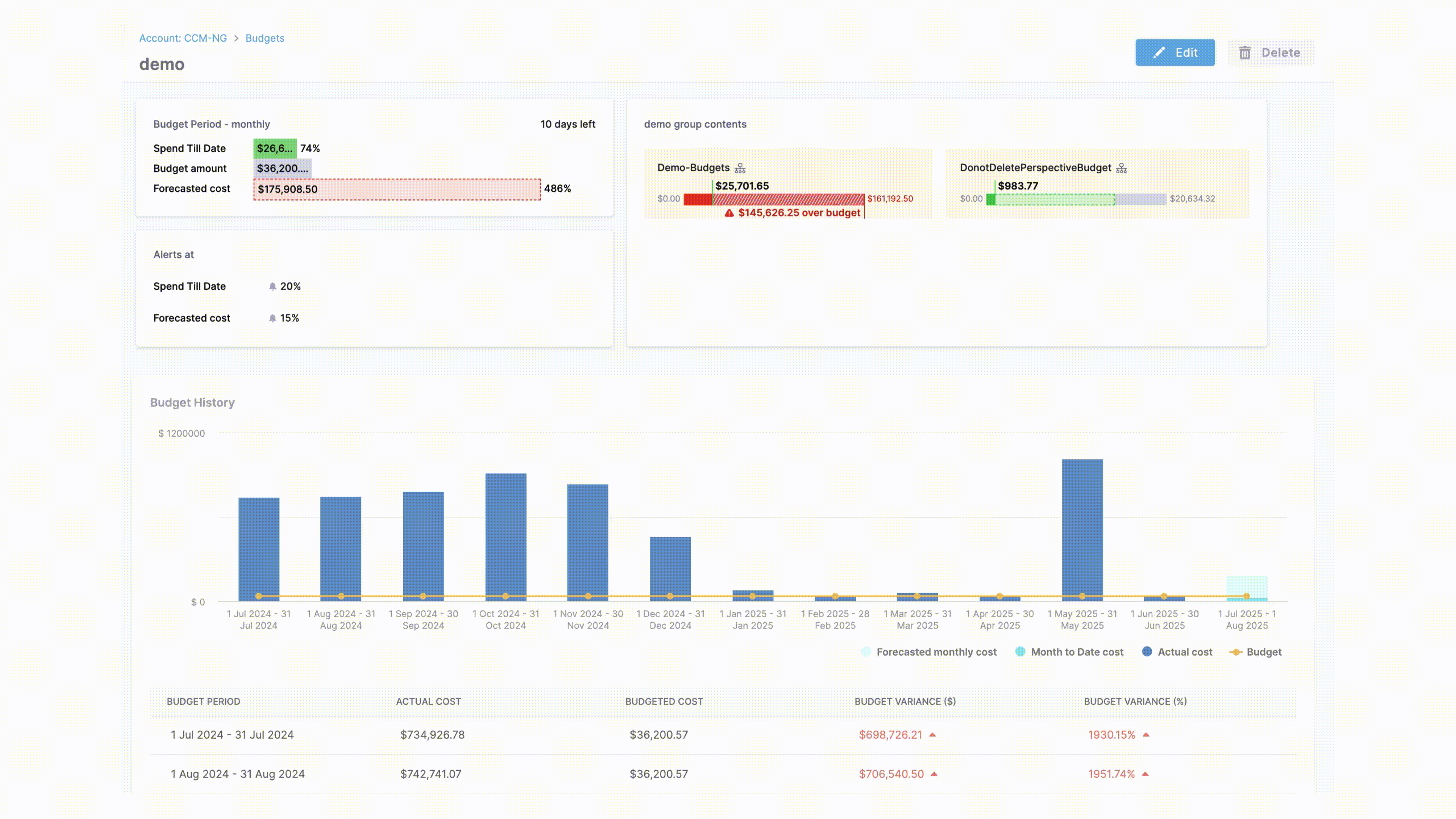- Set Alerts for your budget group: You can set alerts for your budget group to receive notifications when the actual or forecasted cost exceeds a specified percentage of the budget.