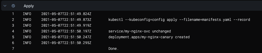 That's it. Harness will perform the Canary and Rollout steps using your manifests and artifacts.