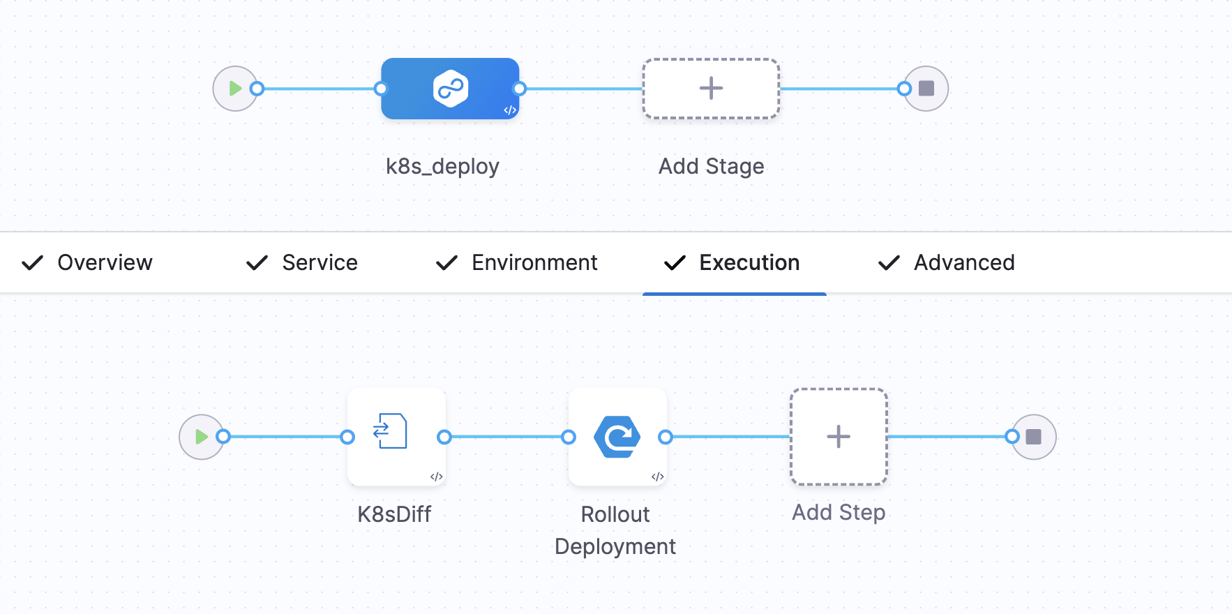 Here is an example of a K8s Diff step added before the Kubernetes rolling deployment: