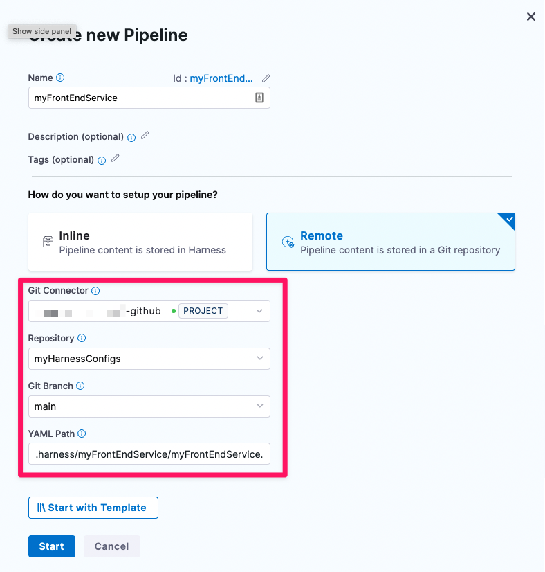 In this case, we save the pipeline YAML as ./harness/myFrontEndService/myFrontEndService.yaml.