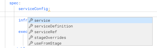 The suggestions depend on the context and location in your YAML.