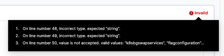 As you edit your YAML, incomplete or invalid YAML triggers the Invalid indicator.