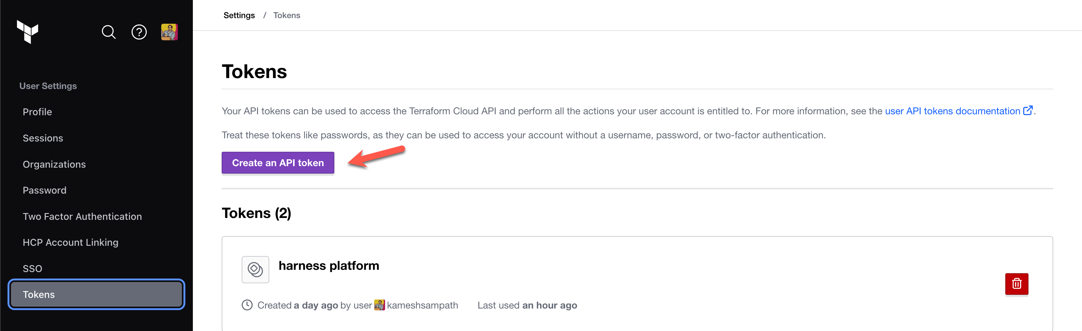 $TF_TOKEN_app_terraform_io. You will refer to this token in your Harness CI pipeline later in this tutorial.