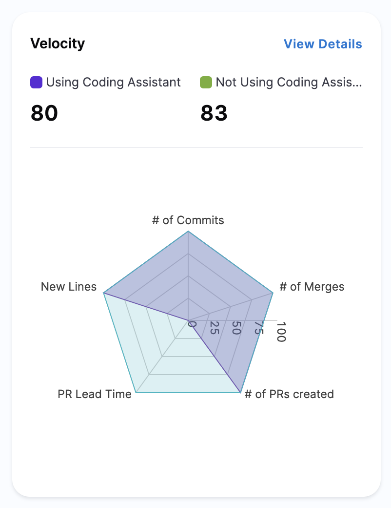 Selecting View Details provides a granular breakdown of each metric's contribution to the overall Velocity score. This view helps teams: