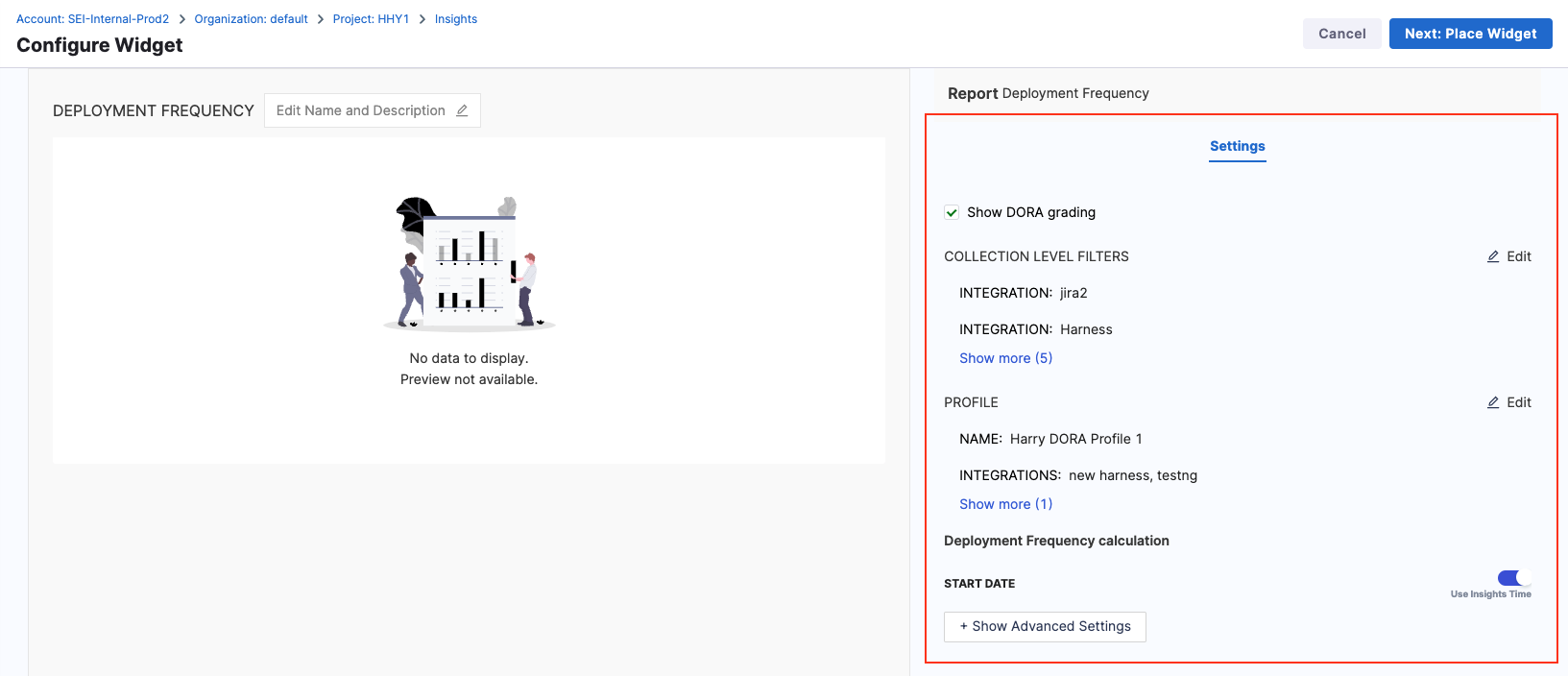 - Select the Lead Time for Changes widget.
